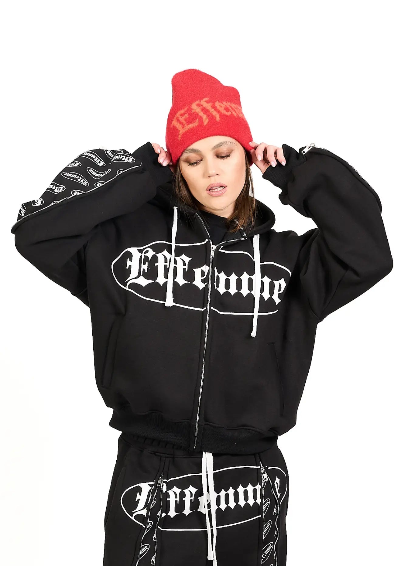Realizzato in mohair rosso, morbido e avvolgente, questo beanie EFFEMME nasce per chi vive la strada come una casa e lo stile come un linguaggio. Il colore acceso non è decorazione: è presenza. La texture calda incontra una grafica decisa, visibile ma mai urlata — un segno di riconoscimento per chi sa leggere tra le righe.